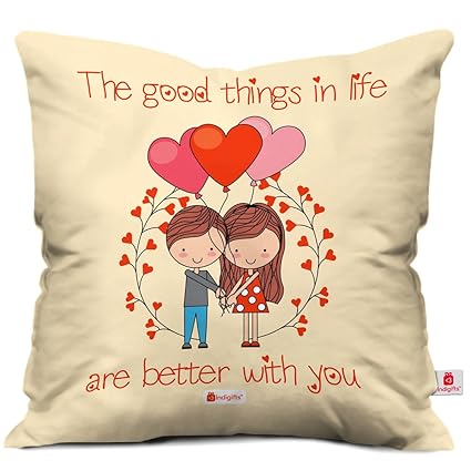 Indibni Love Quote Romantic Couple Holding Heart Shaped Balloons Beige 16 X16 Cushion Throw Pillow Cover Boyfriend Girlfriend Wife Husband Gifts
