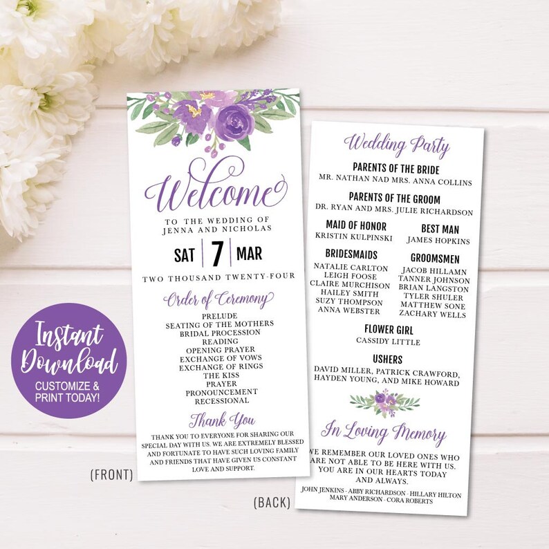 Through him our love will always endure. Blush pink and gold wedding program printable printable wedding program modern calligraphy wedding programs one page wedding program template printable wedding program this bella script wedding program. In this case all you really need is to start the section with a solemn phrase such as in memory of or never to be forgotten 3.